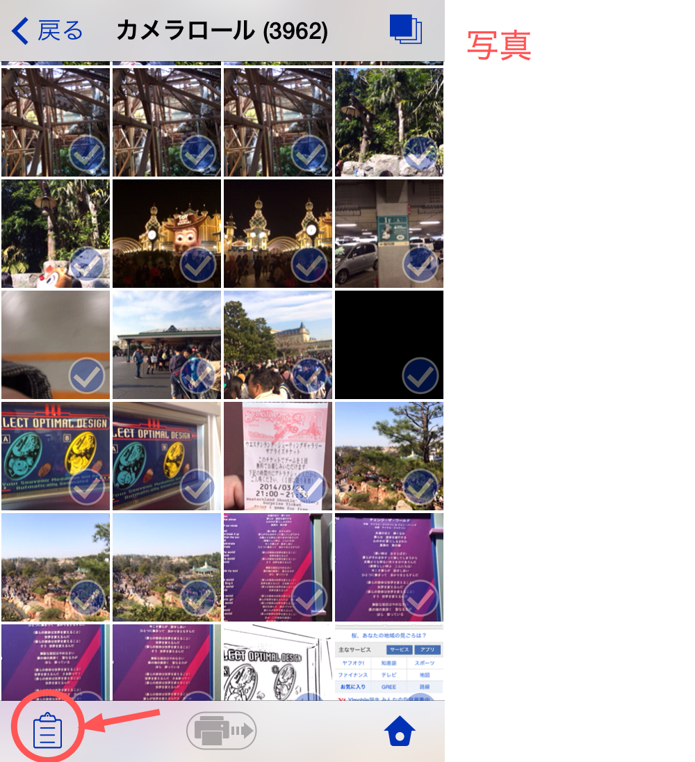 Prime Printの「写真」、「ウェブ」、「ノート」にはクリップボードボタンがありますので、ボタンをタップします。