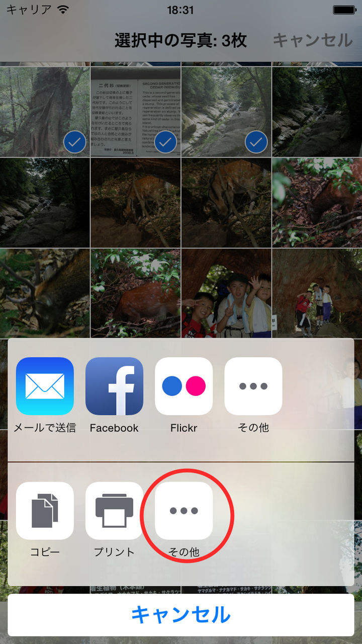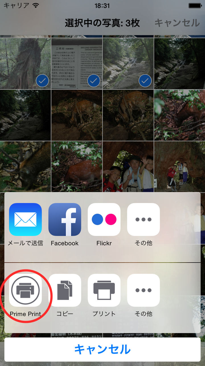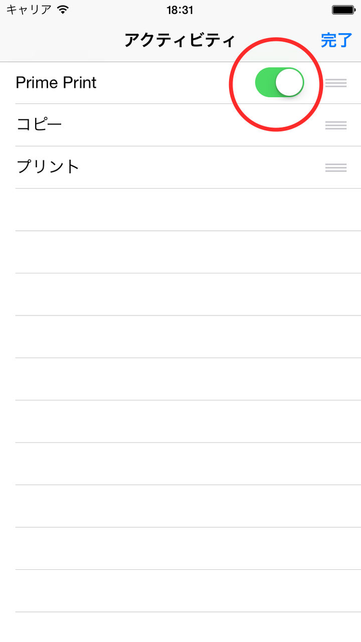 - アクションボタンをタップしてもPrime Printが表示されない場合は一番右にある「その他」のアイコンをタップしてPrime Printを有効にしてください。