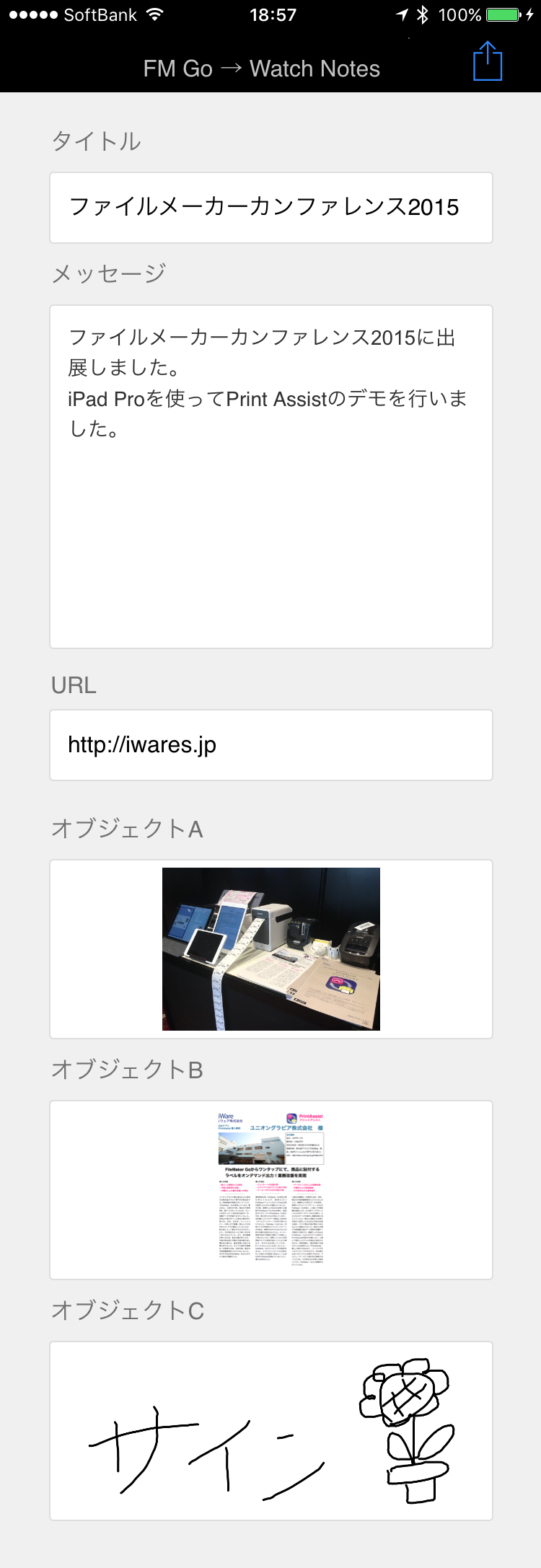 FileMaker GoからiPhoneのWatch Noteへ