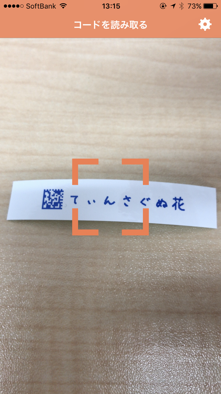 カメラ画面で起動してくるので、先ほどテプラへ印刷したピッとコードを読み取ります。