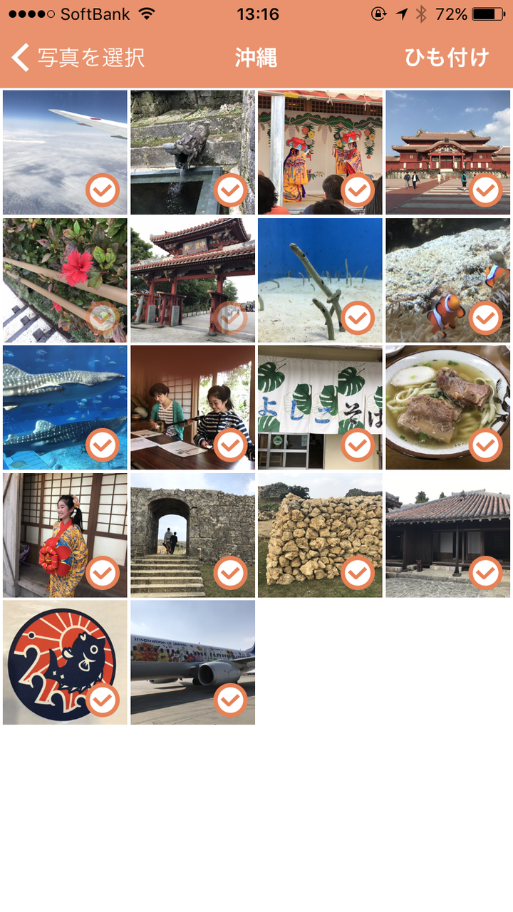 ひも付けしたい写真を右下のチェックボックスで選択し、「ひも付け」ボタンをタップします。